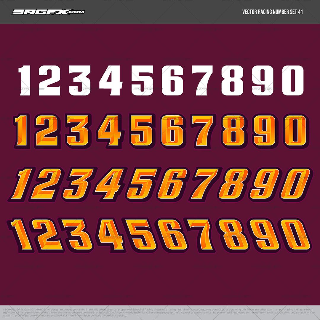 Convex Bold Racing Number Set 41 features a sleek, modern aesthetic that ensures your next wrap design demands attention. The bold convex design and crisp edges enhance readability at high speeds, giving the design noticeably and a readable edge. Simple to customize and apply, these numbers provide a professional look for race wraps at all levels.