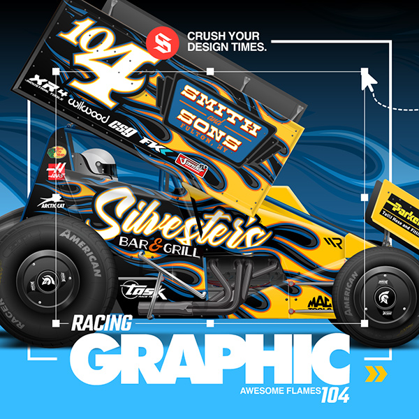 This racing graphic will look awesome on any Dirt Bike, ATV, Drag Car, Modified, Dirt Late Model, East Coast Modified, Asphalt Late Model, Rally Truck, V8 Supercar, Sprint Car etc. If you can race it, then you can wrap it with this SRGFX.com Vector Racing Graphic.