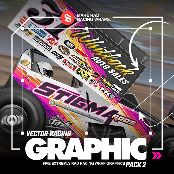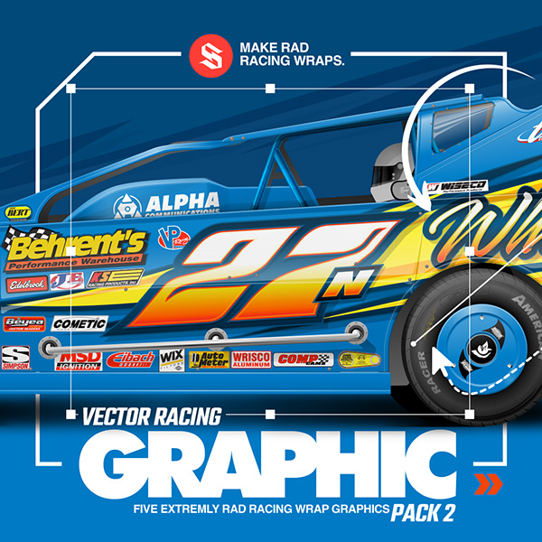 The SRGFX Vector Racing Graphic Pack 2 is 5 seperate racing graphic styles with over 45 design in al. All graphics are easy to customize and modify in your favorite graphic design software. You can mix and match pieces from each wrap to come up with your own graphic combos.