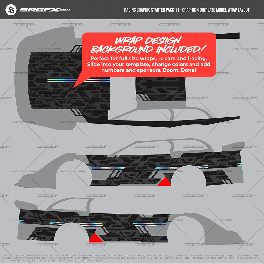 Click box for info Wrap Layout Included!Vector Racing Graphic Starter Pack 1